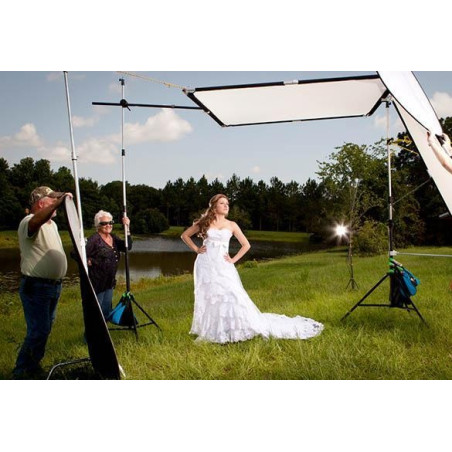 اگر نور خورشید بسیار شدید است، از یک چتر دیفیوزر یا پارچه سفید بزرگ بالای سوژه استفاده کنید.