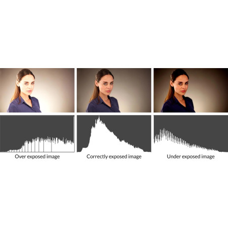 - از یک صحنه ساده سه عکس بگیرید: یکی تاریکتر، یکی روشنتر و یکی متعادل، سپس هیستوگرامها را مقایسه کنید.
